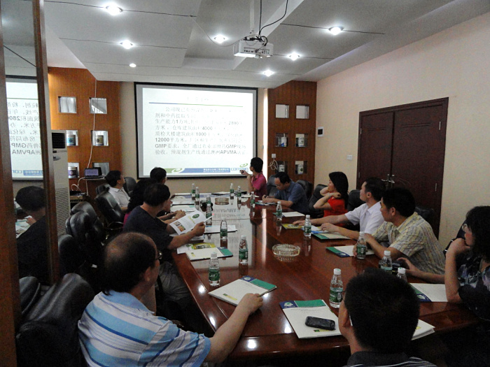 2012年5月11日,我司迎来了佛山科技学院顾教授一行;在公司陈总的陪同下,分别对仓库、车间、中药提取车间等进行了详细的考察。总助黄炜乾就公司目前的生产状况、生产能力、产品结构、人员配置、产品质量监控等方面情况进行了介绍。在听取了介绍后;顾教授等老师对公司在生产管理及产品质量的控制予以了充分的肯定及高度评价,并提供了相关宝贵意见。