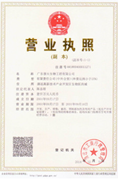 2、鉴于GMP证书、生产许可证的名称变更还在履行手续中,自2015年2月1日至2015年5月1日定为公司商标过渡期,在此期间,我公司的产品包装和产品资料上标示为“清远容大生物工程有限公司”或“广东容大生物工程有限公司”均为我公司的合格产品和资料。