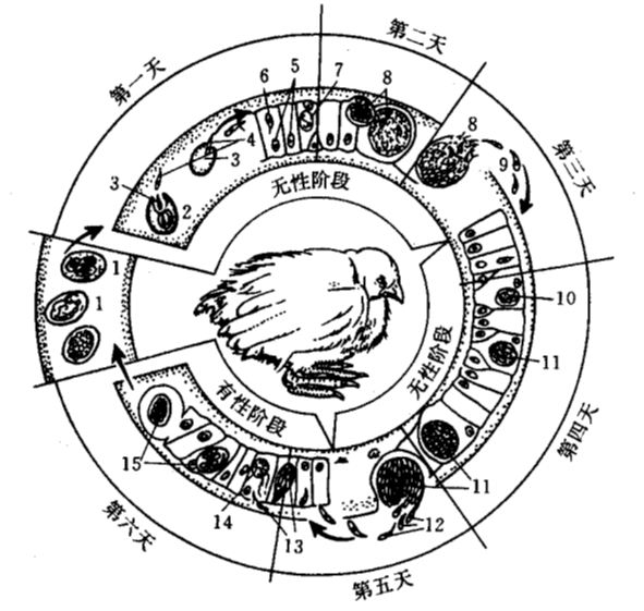 球虫生活史与药物作用峰期