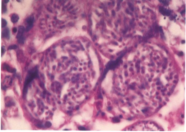 • 经反复数次裂殖生殖之后,有的裂殖子成为雄性的小配子体,有的成为雌性的大配子体。配子体经1~2天成熟,小配子体中形成许多具有两根鞭毛的小配子。小配子离开宿主细胞,进入大配子,完成受精过程。大配子受精成为合子。其表面形成一厚壁,合子即变为卵囊。