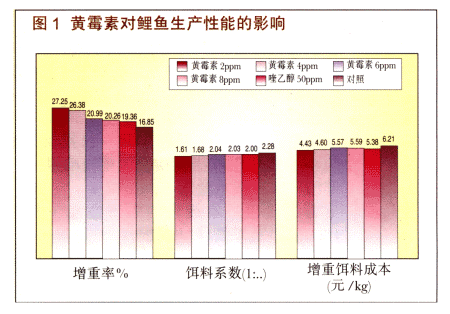 黄霉素可显著改善鲤鱼的生产性能,其中以2ppm组效果最为理想(图1略)。