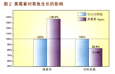 试验结果:黄霉素显著促进草鱼增重,改善饵料系数(见图2)