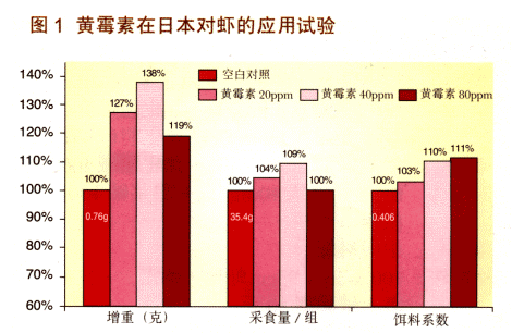 黄霉素可显著提高日本对虾的生产性能,并以40ppm添加组效果较佳(图1略)。