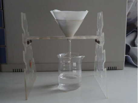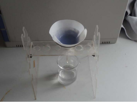3、过滤溶液,可以看出溶液中的亚甲基蓝全部被吸附,过滤出的水非常清澈。