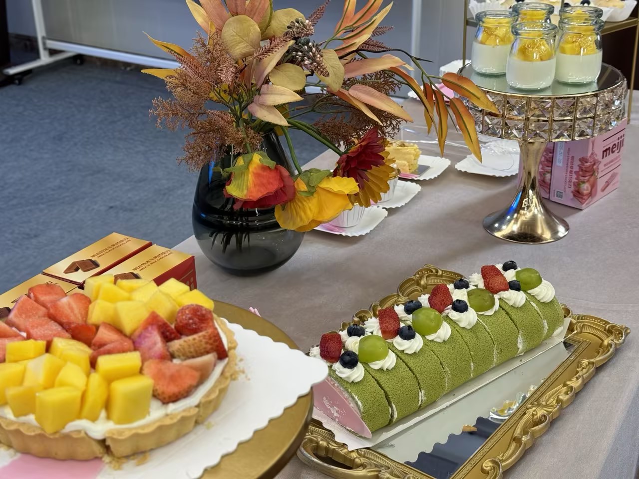 活动开始前,桌上已经摆满了各式各样的精致茶点。小巧的蛋糕、香甜的酸奶、缤纷的水果……每一口都是对味蕾的诱惑。