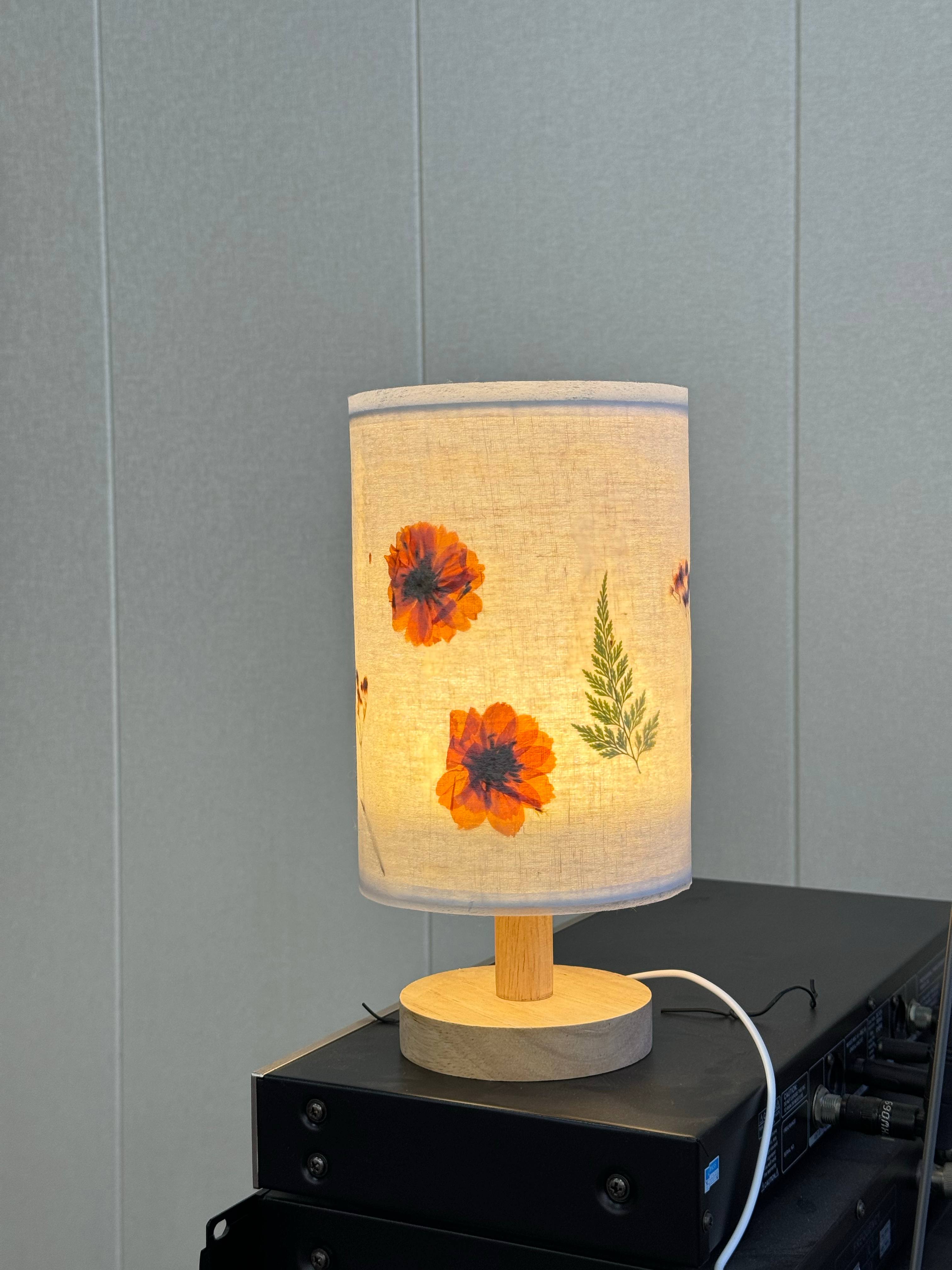 活动现场被装扮得温馨而雅致,桌上摆满了压花台灯所需的各式花材、永生花的精致配件、拓印所需的板子与刻刀、制作小花灯所需的彩纸与灯丝。